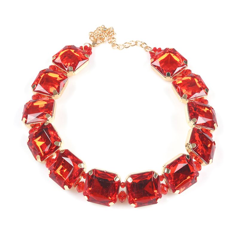 Colier statement cu cristale rosii patrate si montura aurie REF: 1A08CAJ33273-1-CL25T