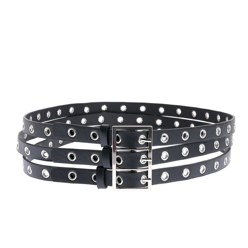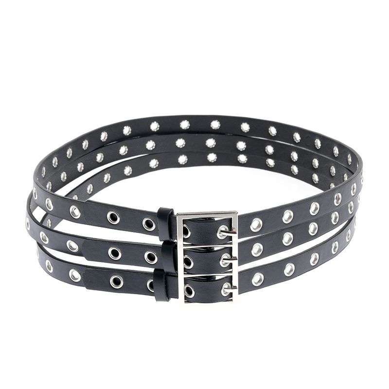 Curea tripla neagra cu tinte si catarama argintie REF: 1J05WEI0213-15-CL25T