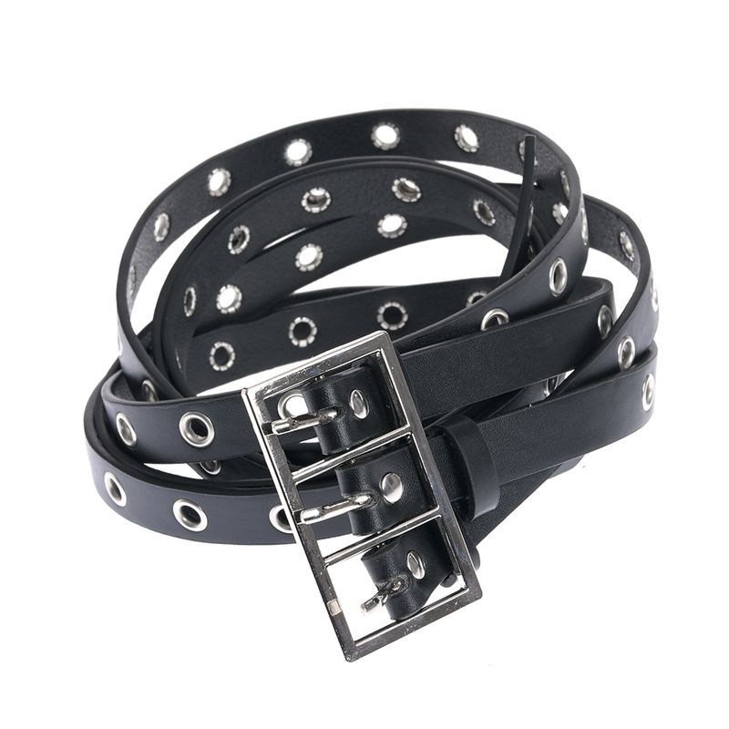 FemeiAccesoriiCureleCurea tripla neagra cu tinte si catarama argintie