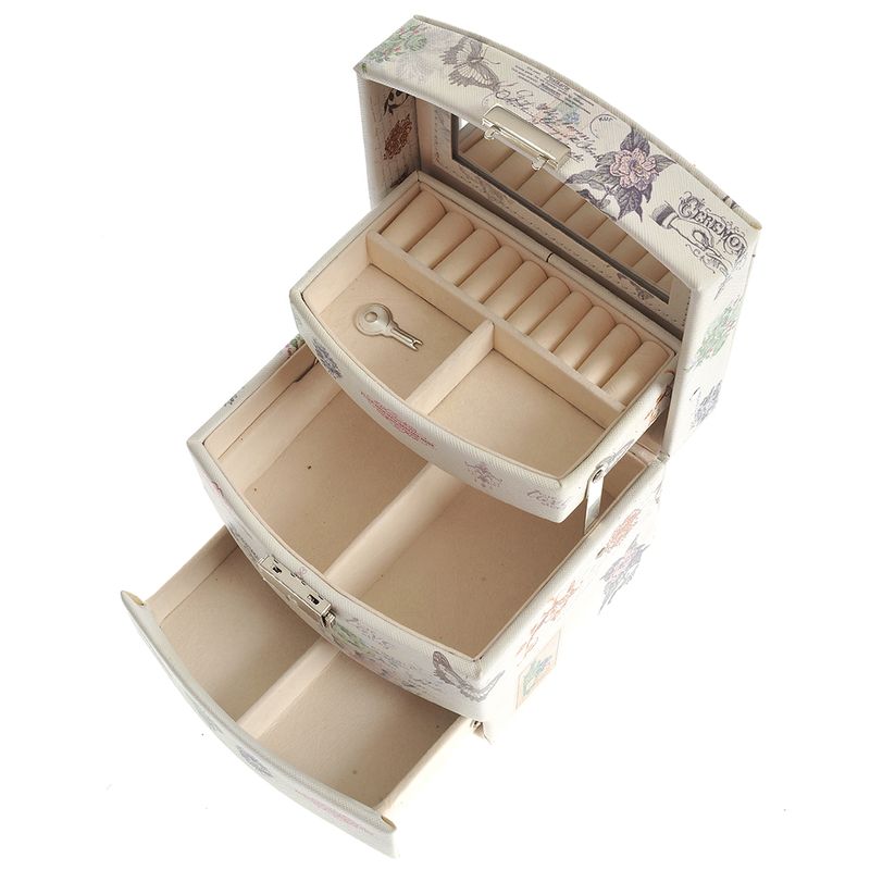 Tip produs: Cutie de bijuterii Material: Acrilic Culoare: Multicolor Compozitie: 80% Poliuretan, 15% Acrilic, 5% Sticla Dimensiune: ~ 15.5 x 12 x 13 cm