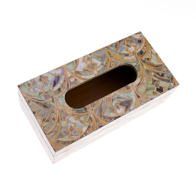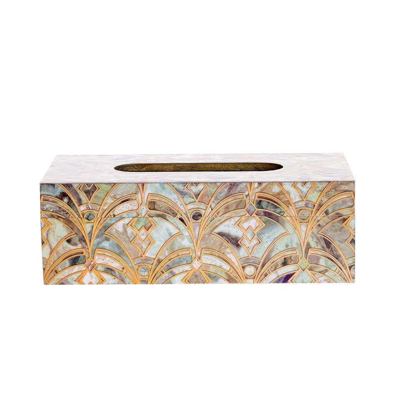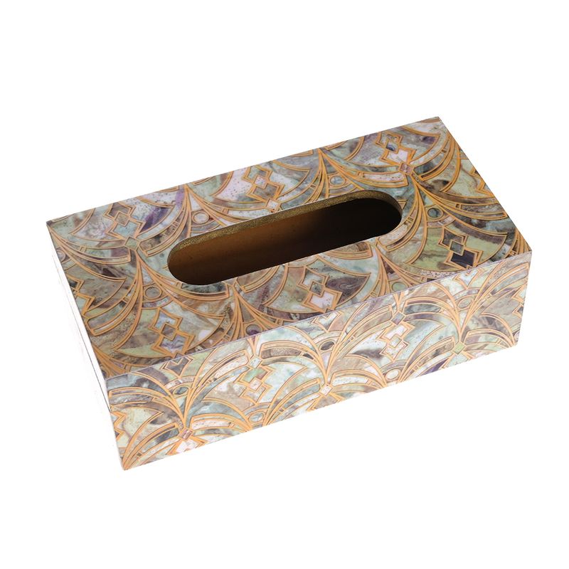 Cutie eleganta pentru servetele, cu design geometric in stil art deco, perfecta pentru decorarea rafinata a biroului, livingului sau baii.