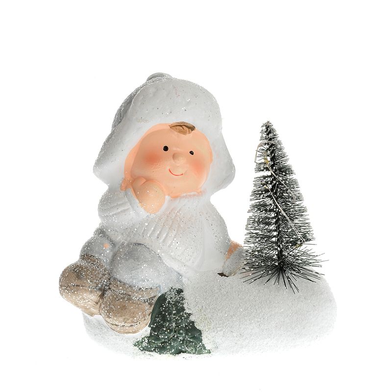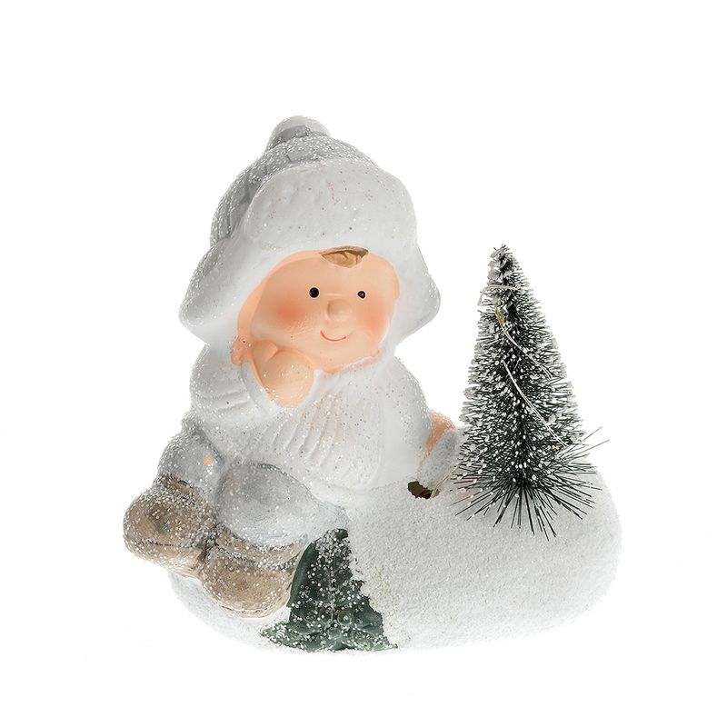 Decoratiune de Craciun cu copil in zapada si mini brad REF: 2R03NOV6602-30-GN24T