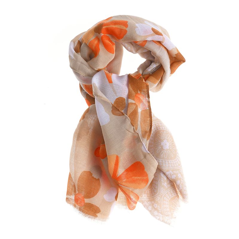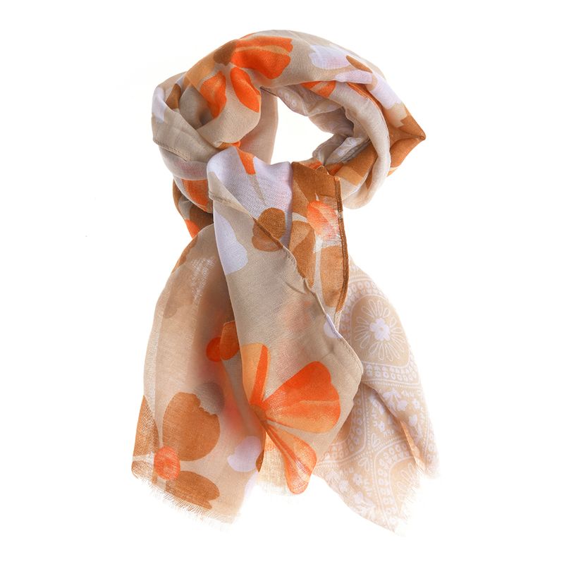 Esarfa bej din vascoza cu flori delicate REF: 1G01LDS91527-1-EO25V