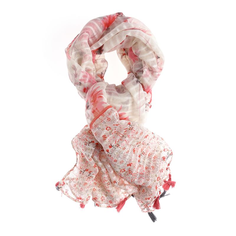 Esarfa cu imprimeu floral rosu si ciucuri decorativi REF: 1G01LDS91409-3-EO25V