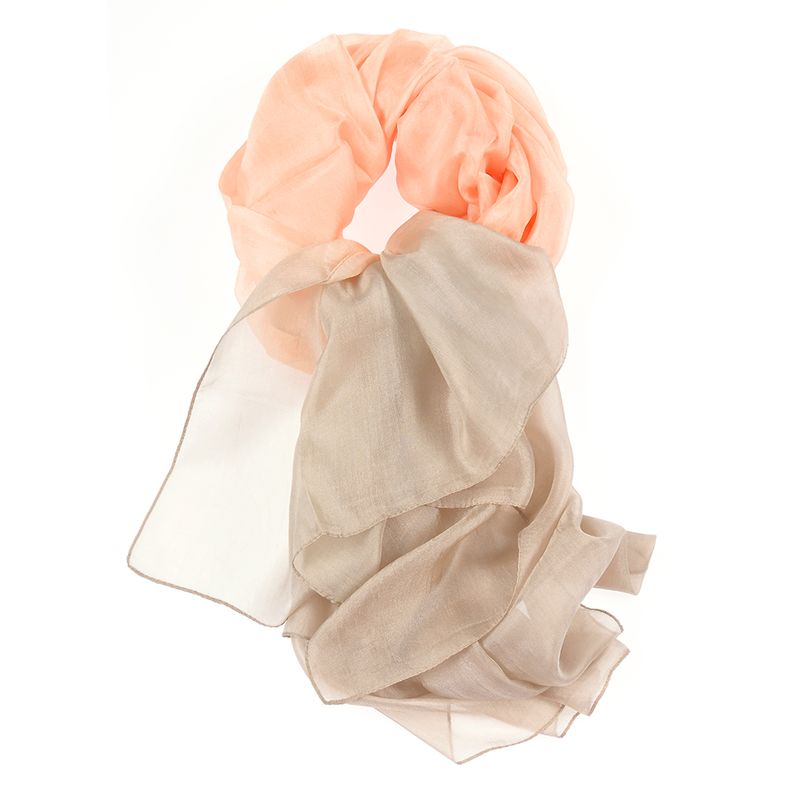 Accesoriu delicat cu efect sofisticat, aceasta esarfa in nuante degrade de bej si piersica adauga rafinament oricarei tinute. Confectionata dinmatase, se potriveste perfect atat pentru stiluri casual, cat si elegante.