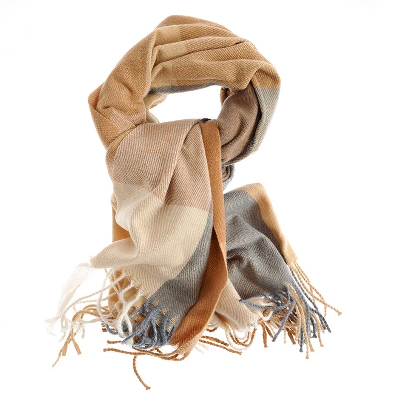 Esarfa groasa bej cu franjuri pastel REF: 1G01WEI0319-24-CL24T