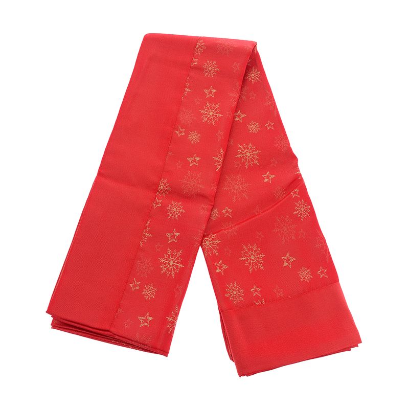 CraciunDecoratiuniFata de masa rosie cu stelute si fulgi aurii 150 x 240 cm