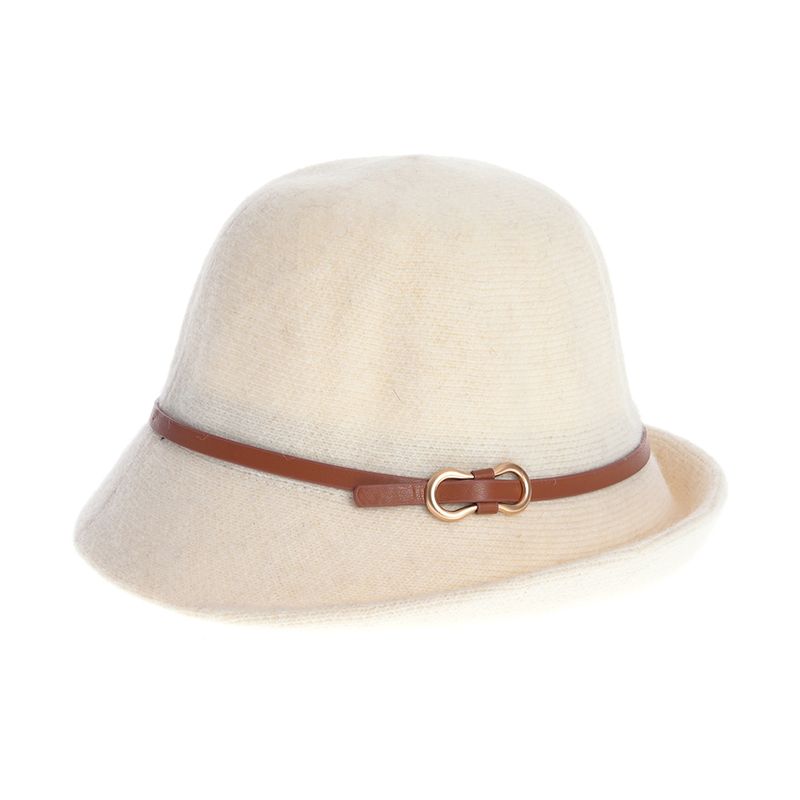 Palarie crem eleganta cu curea maro si detaliu metalic REF: 1L05NGB24W02-1-CL25T