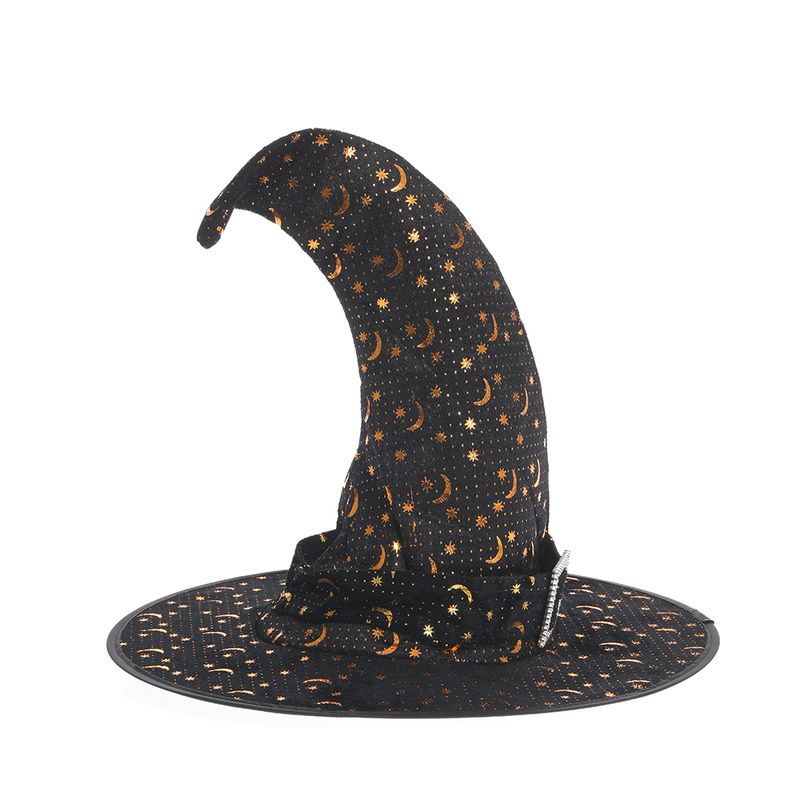 Palarie vrajitoare neagra cu imprimeu auriu luna si stele REF: 2P01RBWRNB1632-GN25T