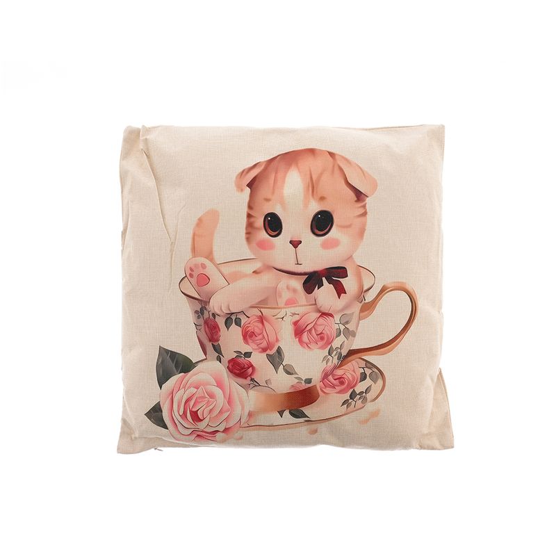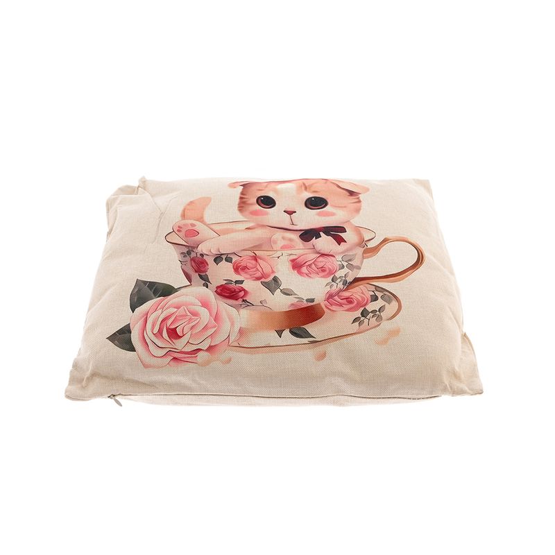 DecoCasaPerne decorativePerna cu imprimeu pisica si trandafiri roz