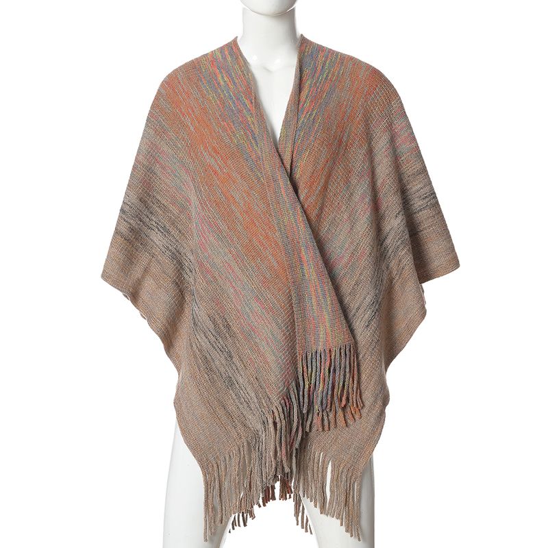 Poncho bej cu franjuri si insertii multicolore REF: 1R02WEI0213-09-CL25T