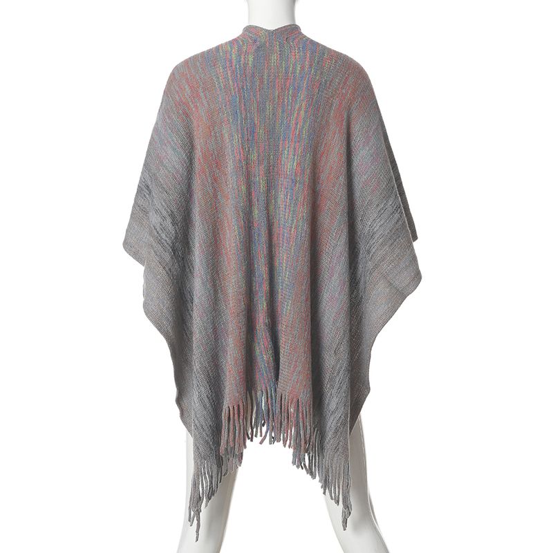 Poncho gri cu franjuri si accente colorate REF: 1R02WEI0318-37-CL25T