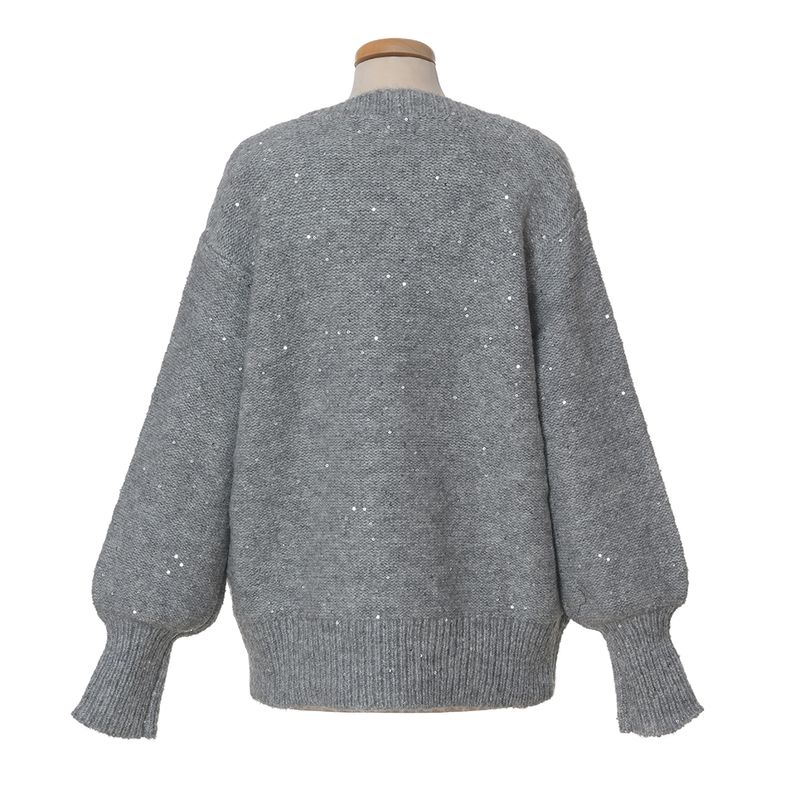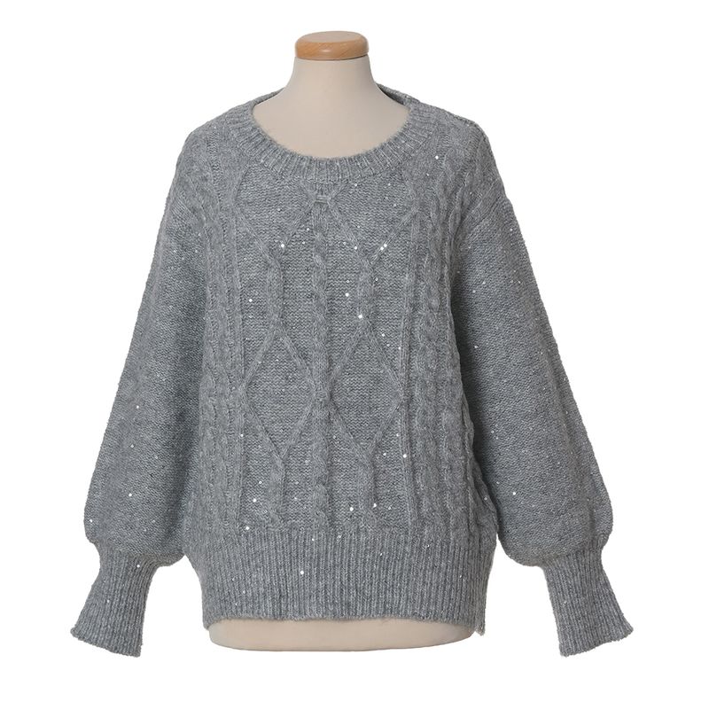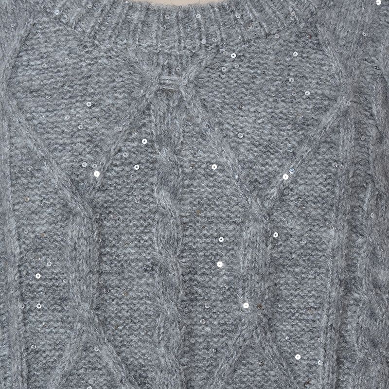 Pulover tricotat gri cu model impletit si paiete REF: 1R07YIU0093897-CL25T