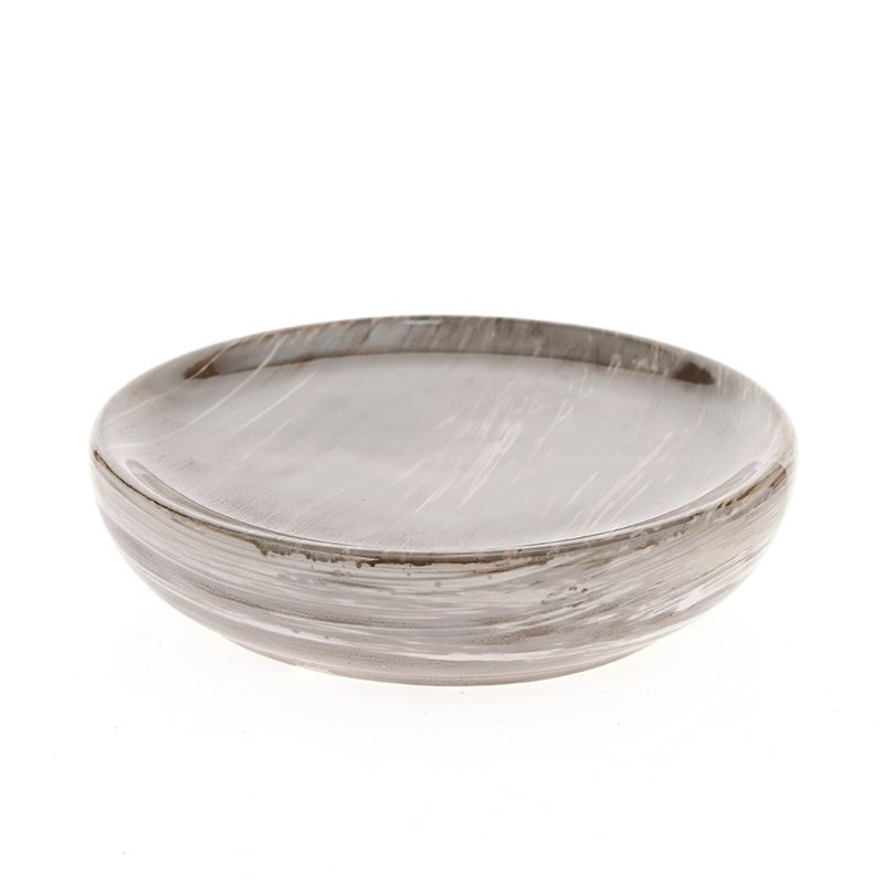 Aceasta savoniera eleganta din ceramica, cu finisaj lucios si nuante naturale de maro-bej, aduce un plus de rafinament in baia ta. Forma rotunda si liniile fine o fac potrivita pentru orice stil de decor.