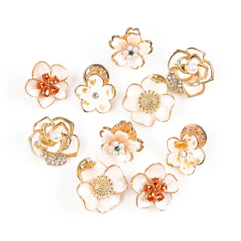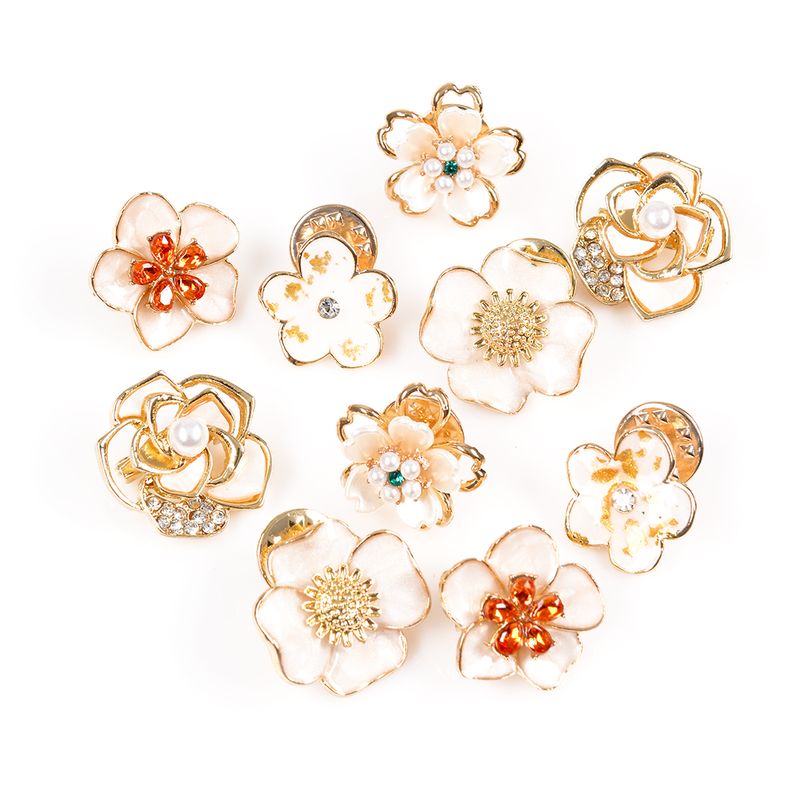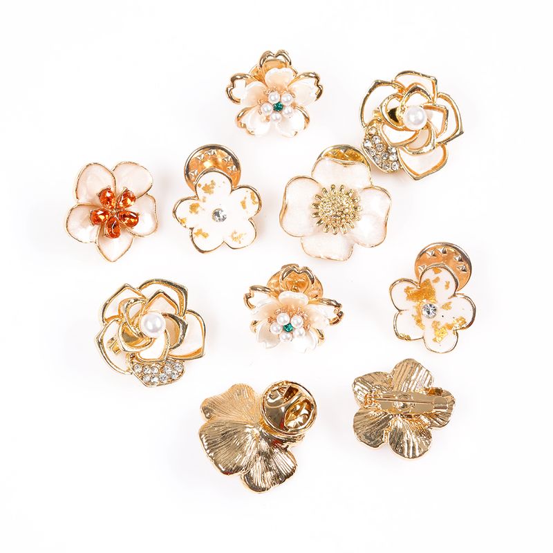 Set 10 brose martisor flori aurii cu perle si pietre REF: 1A06DTCS10FLR1-CL26V