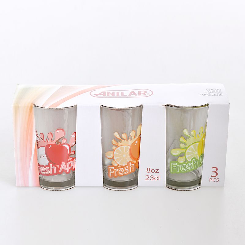 Acest set de pahare ofera o abordare creativa si colorata pentru servirea bauturilor. Fiecare pahar, avand o capacitate de 230 ml, este fabricat din sticla de calitate, oferind durabilitate si un aspect estetic placut. Varietatea de culori din set adauga un plus de personalitate si stil oricarei mese.