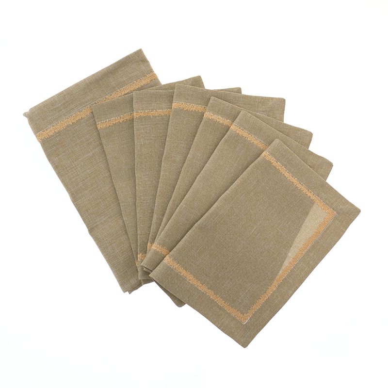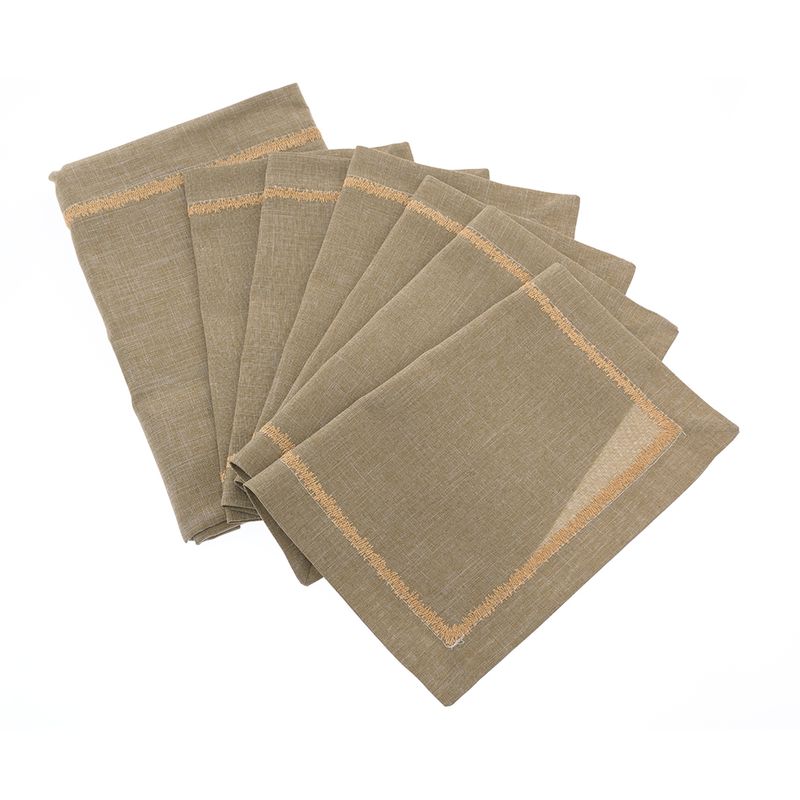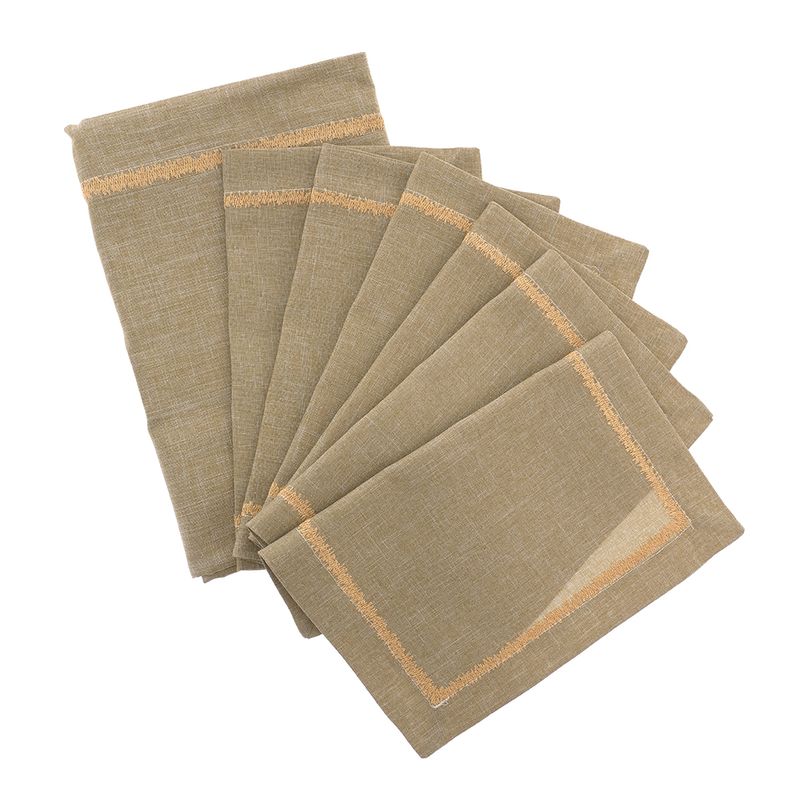Set napron si 6 servete maro de masa cu margine brodata REF: 2A07AVNDO23670-GN25T