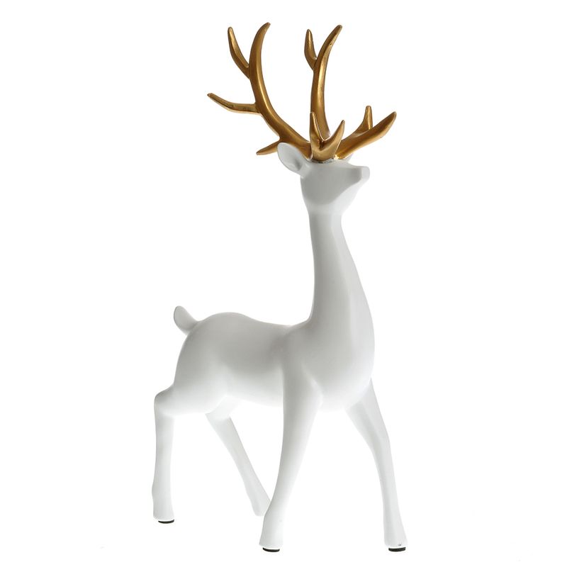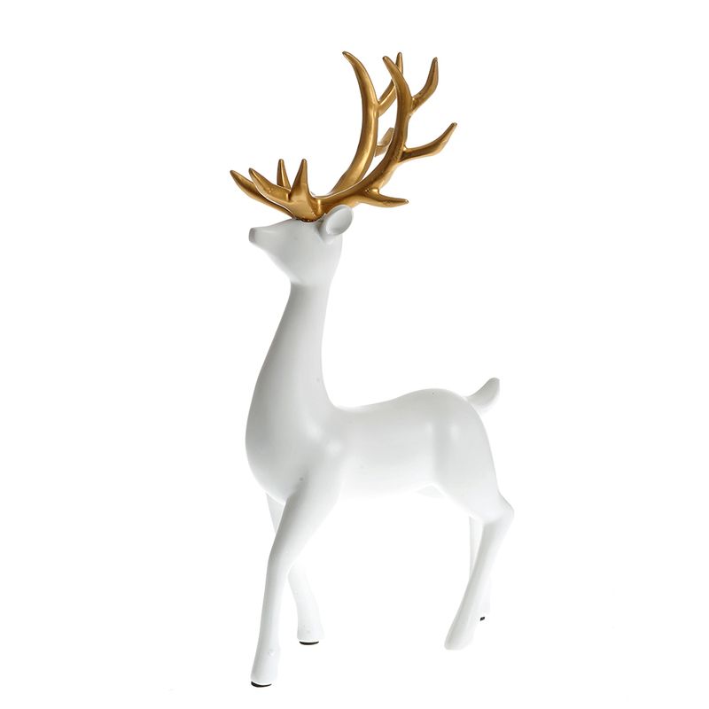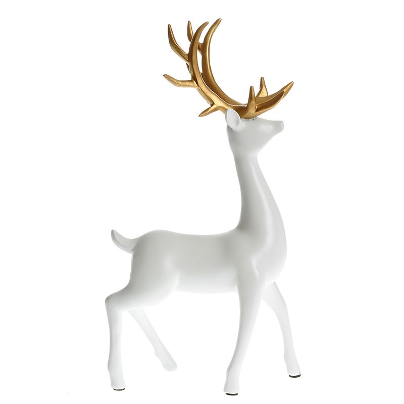 DecoCasaDecoratiuni casaStatueta cerb alb cu cornite aurii 33 cm