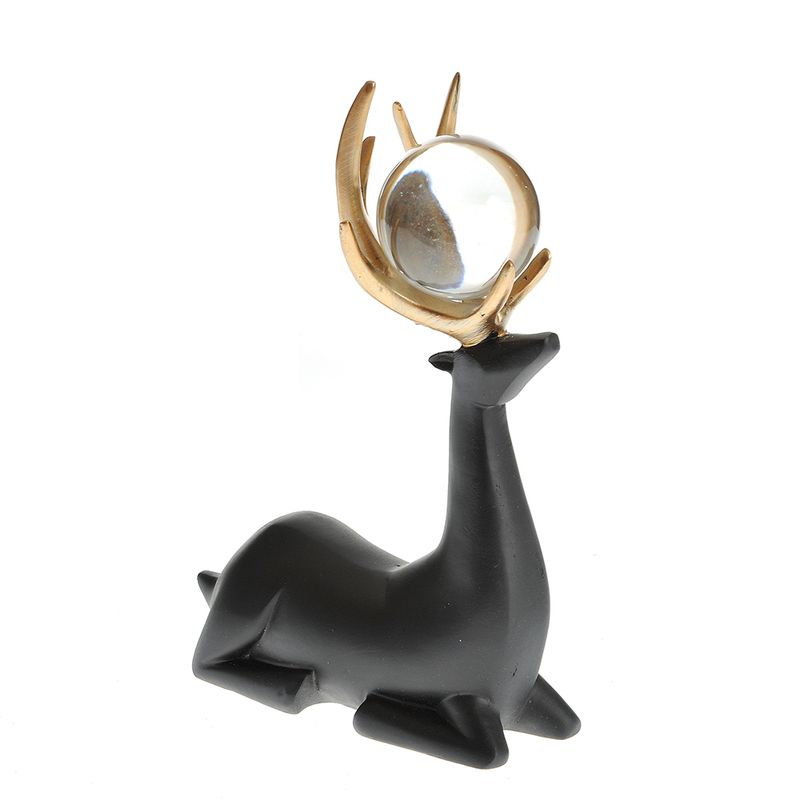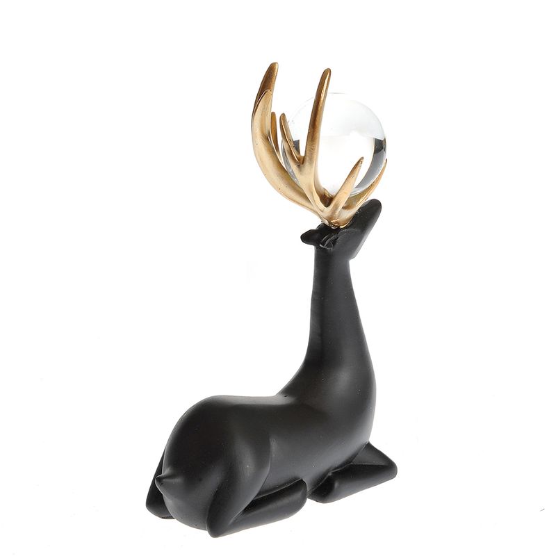 DecoCasaStatueteStatueta cerb negru cu coarne aurii 18 cm