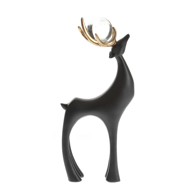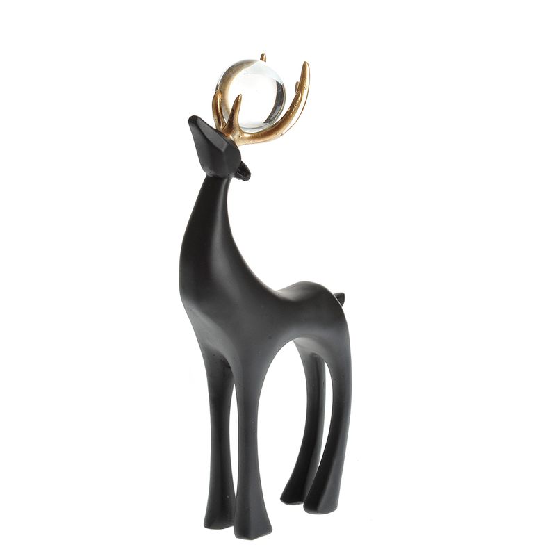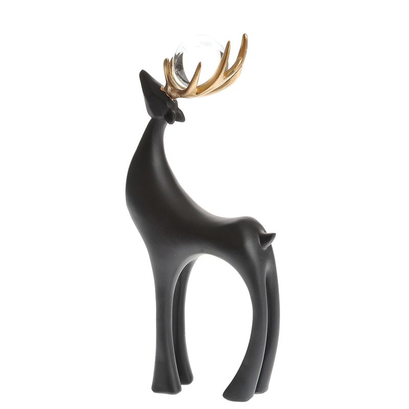 DecoCasaStatueteStatueta cerb negru cu coarne aurii 28 cm