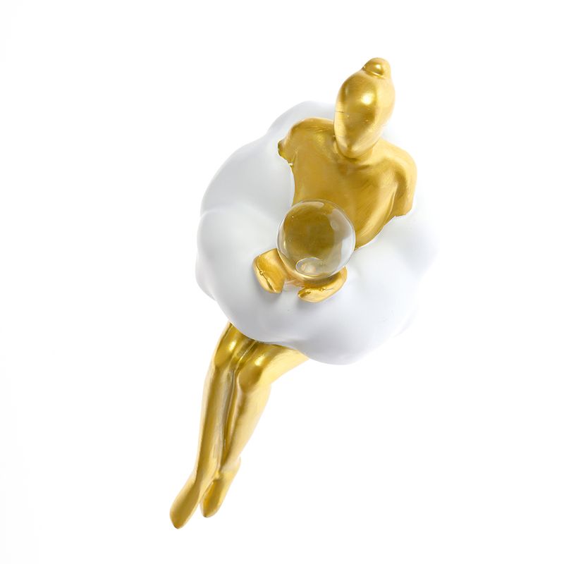 Aceasta statueta moderna impresioneaza prin designul elegant si contrastul dintre finisajul auriu si norul alb mat. Ideala pentru decor contemporan, simbolizeaza visarea si echilibrul interior. Sfera din sticla adauga un plus de rafinament.