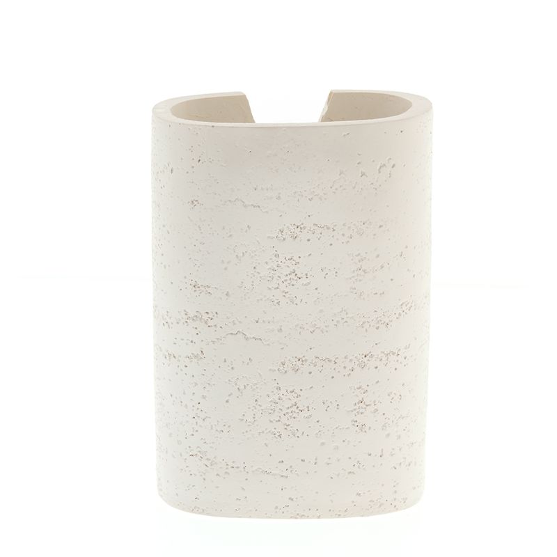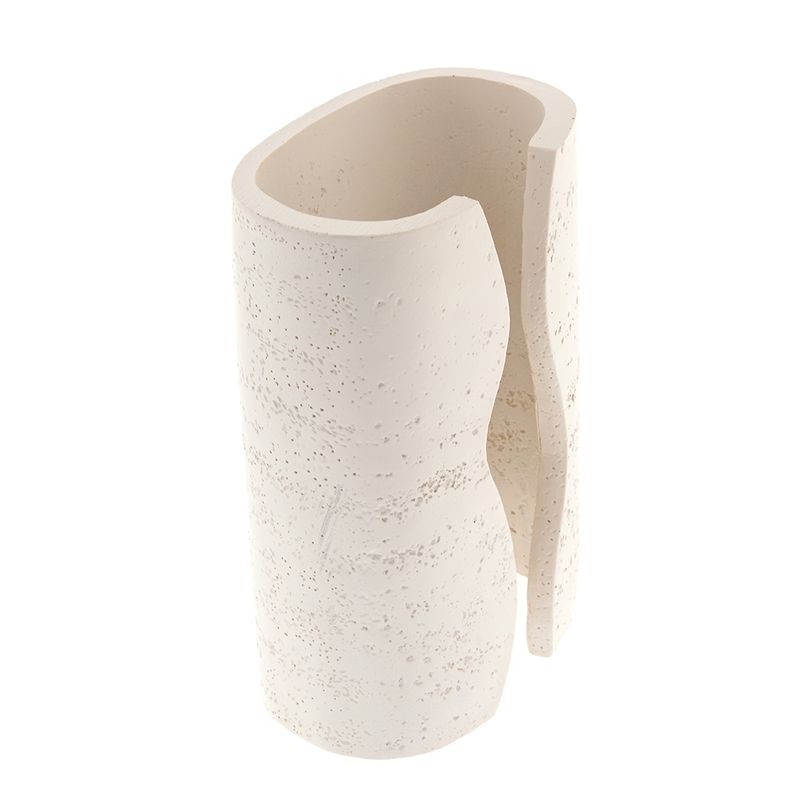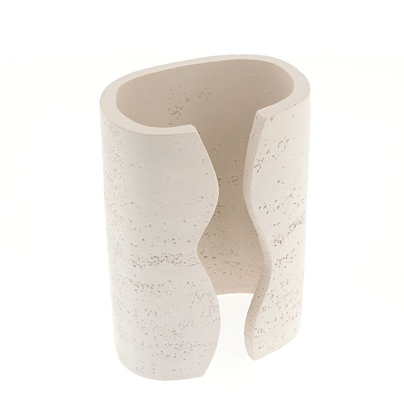 Cu un design sculptural si textura naturala, acest suport ceramic aduce un accent modern si rafinat oricarui interior. Ideal pentru flori uscate, reviste sau ca piesa decorativa.