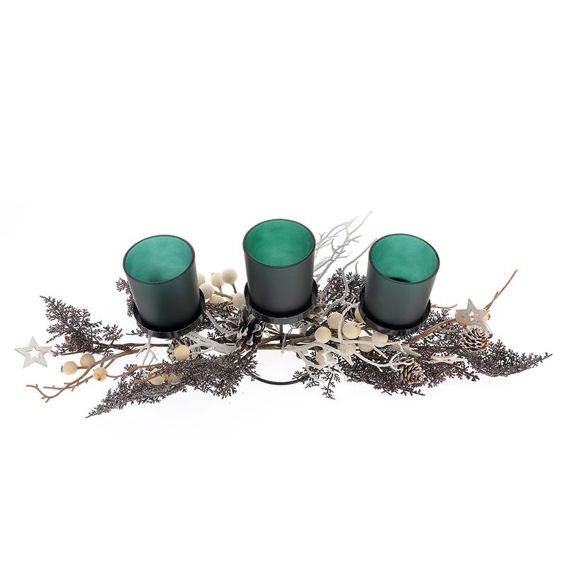 Suport triplu pentru lumanari cu crengute si conuri REF: 2R16ALBAB24127-GN25T